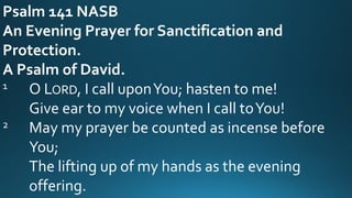 Let the wicked fall into their own nets while I pass by safely. May my prayer be counted as incense before You. A David prayer - when he was.